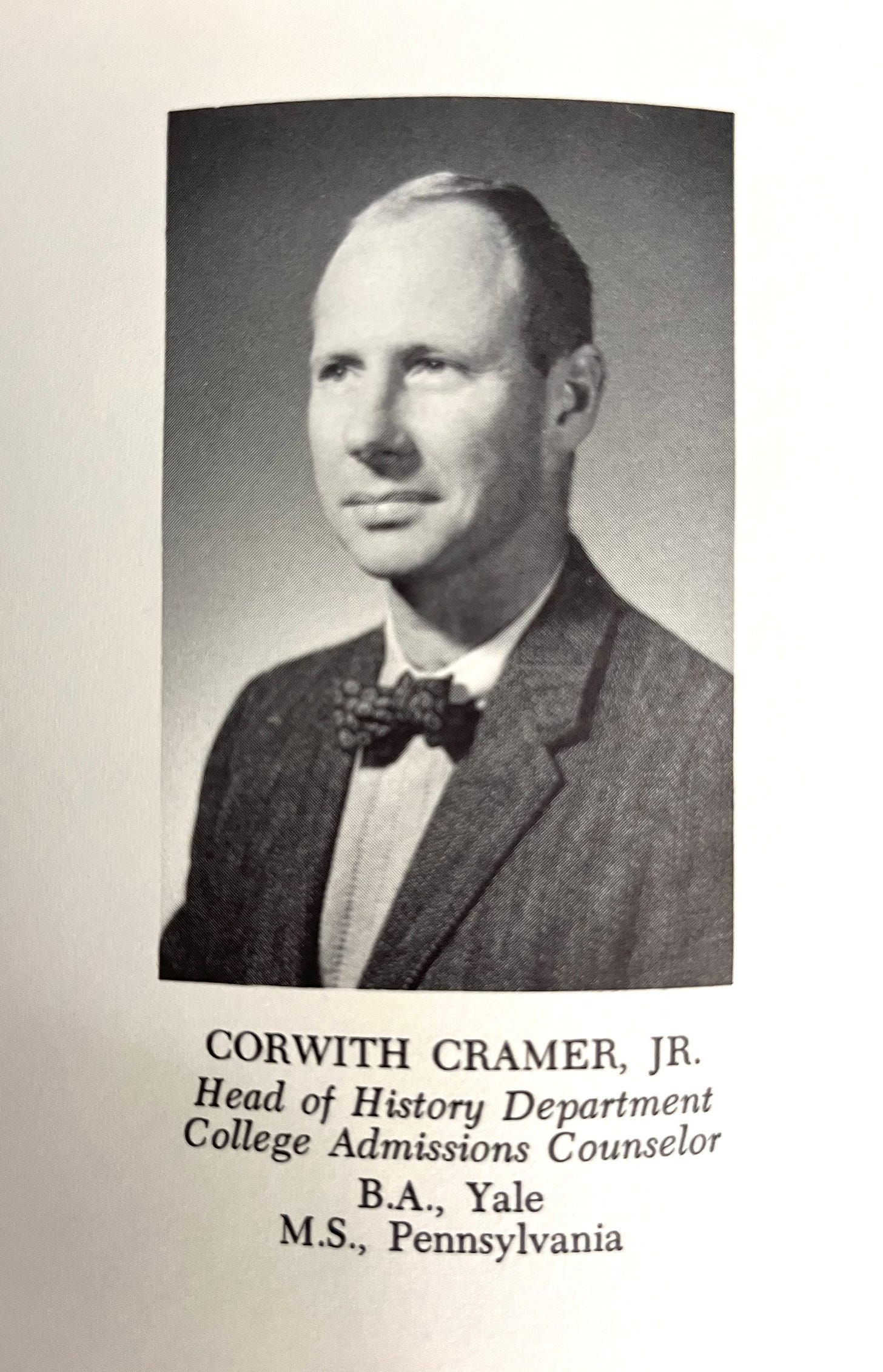 Corwith Cramer Jr was an East coast blue blood and my history teacher.